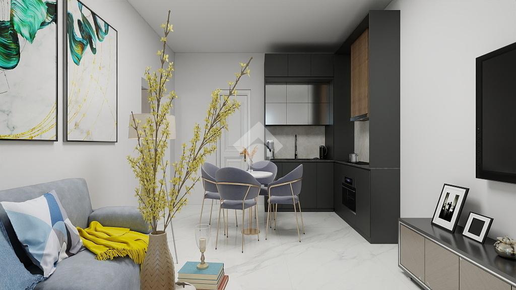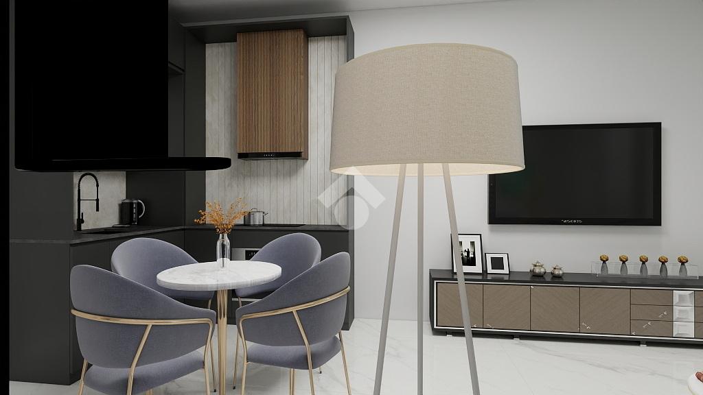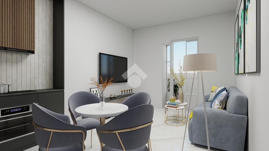 ingresso su soggiorno con angolo cottura e balcone,