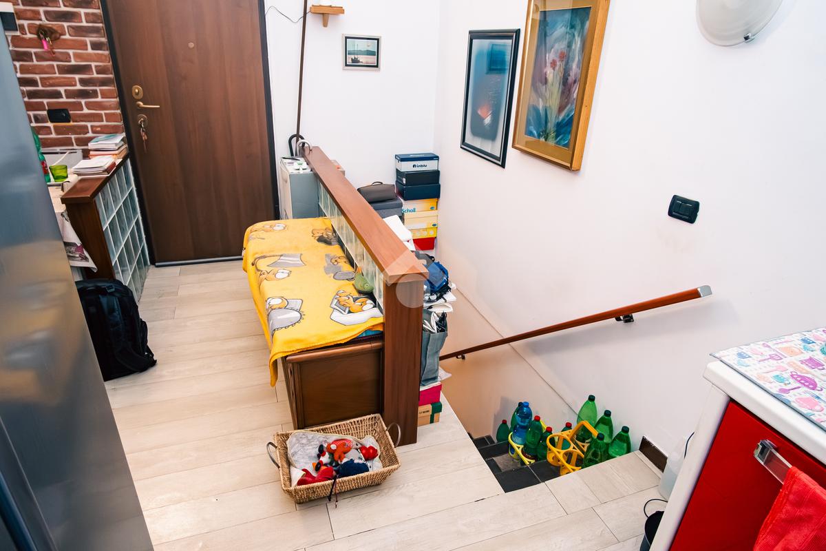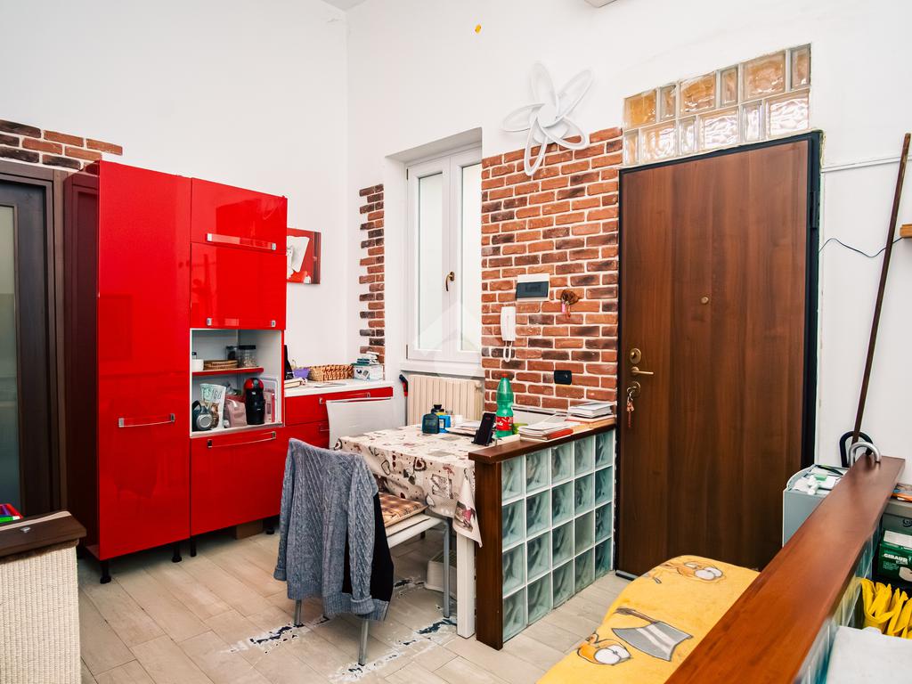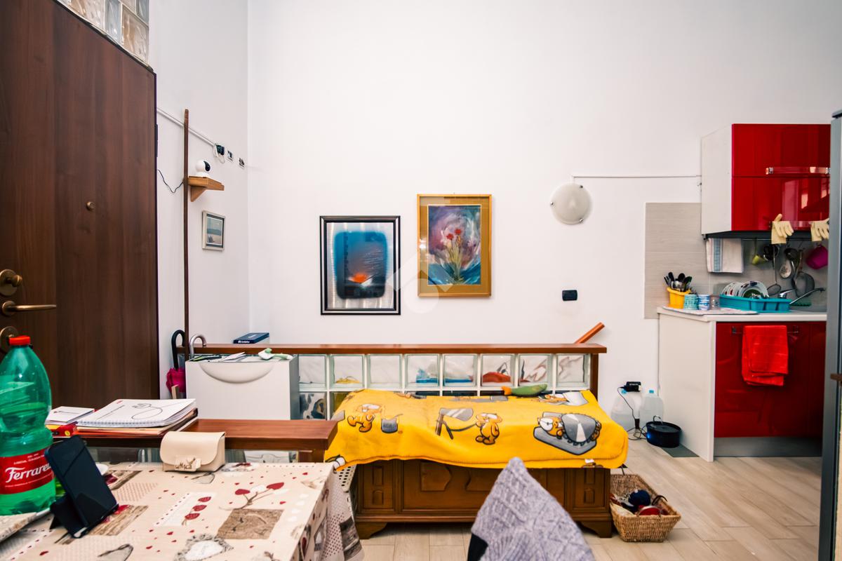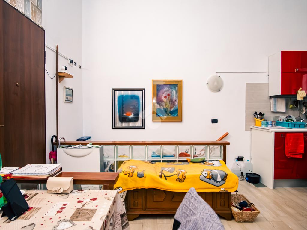 L'immobile è composta da ingresso sul la zona giono con cucina a vista, camera da letto , antibagno e bagno. Dalla zona giorno, attraverso una scala interna si accede all'ampia cantina .