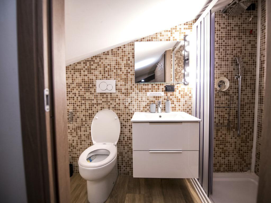 Al primo piano sono presenti altre tre camere da letto, tutte con bagno privato, una con balcone, un bagno ampio a parte oltre a mansarde e locali di servizio che aumentano la superficie funzionale e la flessibilità dell’immobile. La disposizione interna consente, con interventi mirati, una razionalizzazione degli spazi finalizzata all’ottimizzazione dell’offerta ricettiva o a soluzioni di ospitalità aziendale.